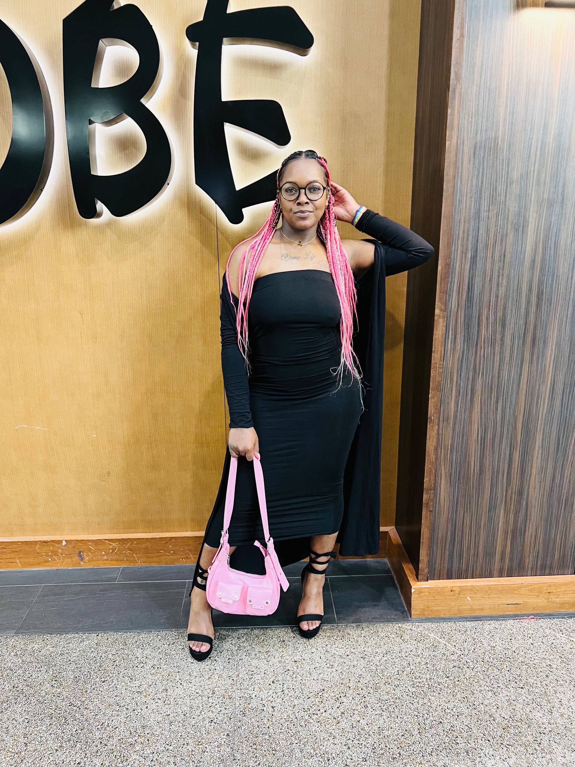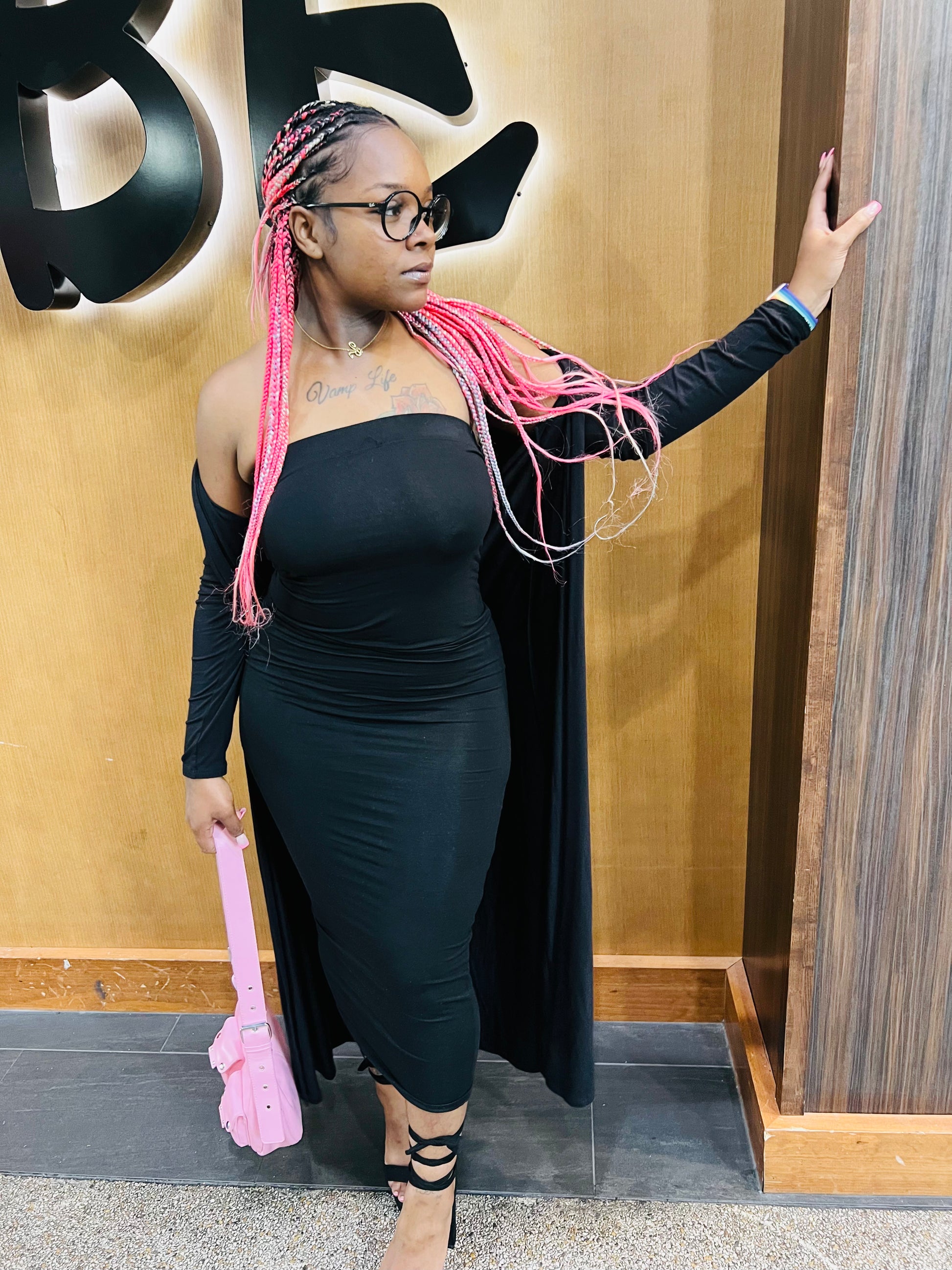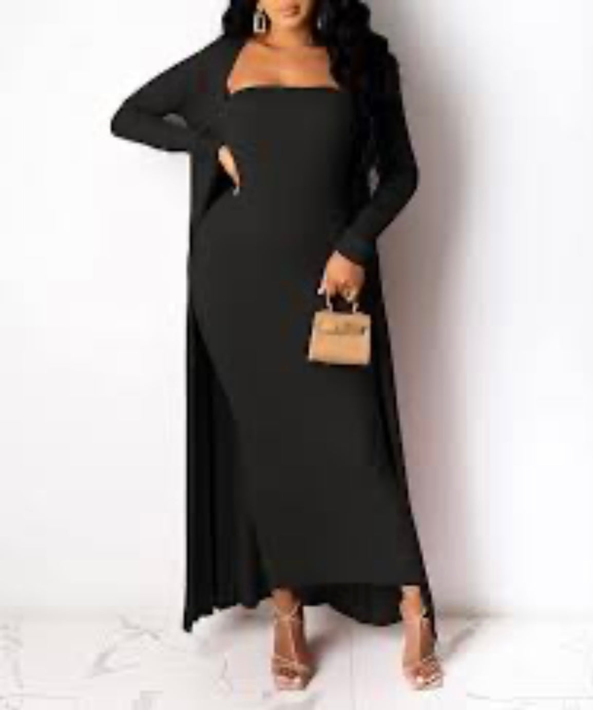 "The India Set includes a stylish black midi tube dress paired with a matching cardigan for a complete and fashionable look."